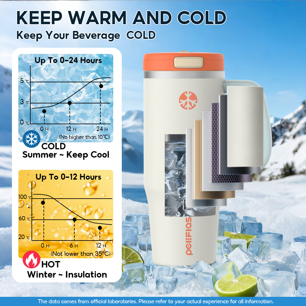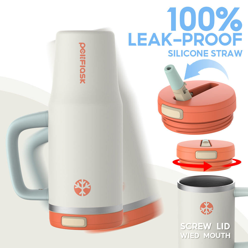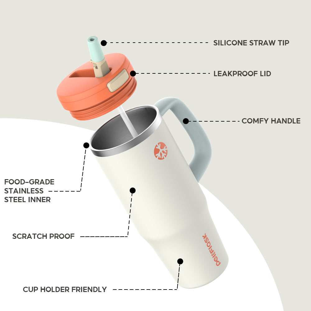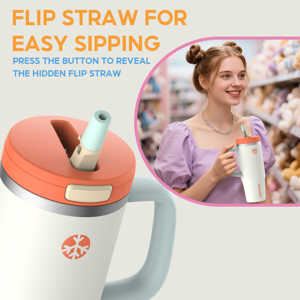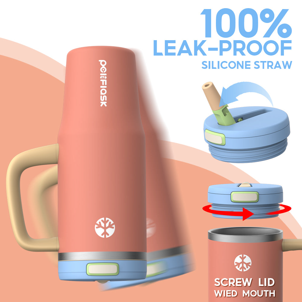 Peliflask 32oz Stainless Steel Insulated Tumbler with Foldable Straw & Handle – Leakproof Travel Cup