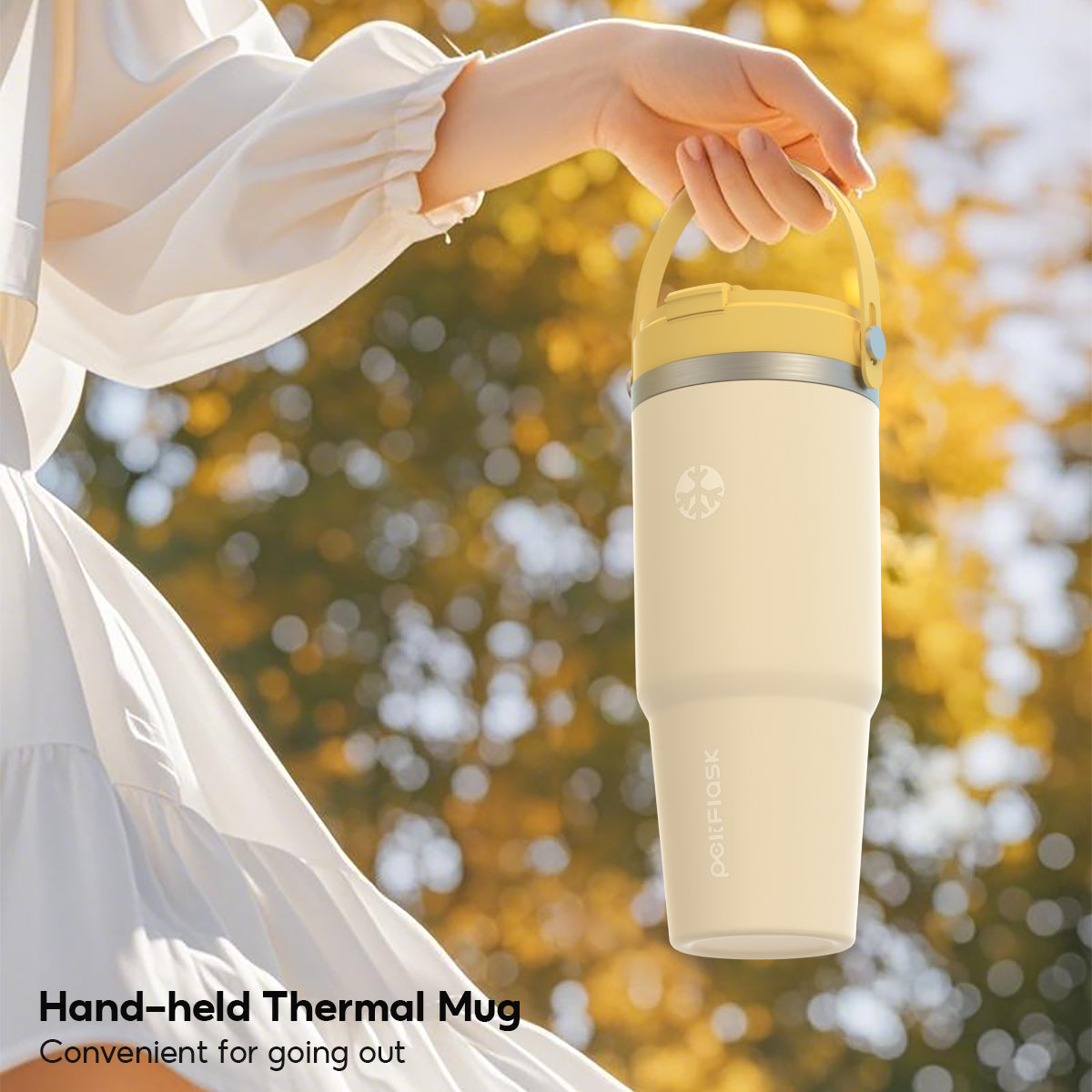 The soft carry handle makes it easy to take your travel tumbler anywhere.